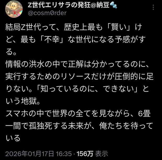 1 :それでも動く名無し:2026/02/05(木) 00:30:33.87 ID:EVQkiQpA0.net続きを読む