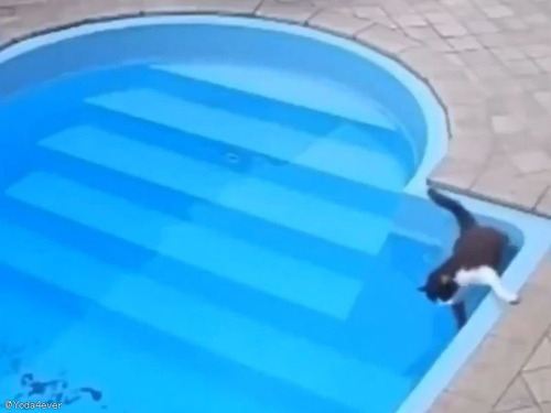 プールに落ちた猫がしばらく溺れかけて…泳げることを思い出す