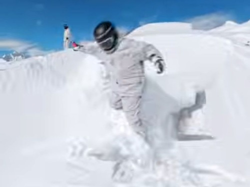 雪山でスノーボードをしていたら…足元が崩れてストンと落ちる(動画)