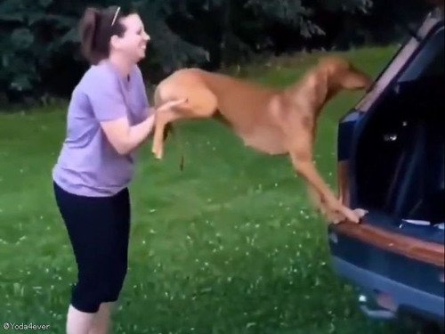 飼い主「さあ、車に乗るよー」犬「もっと遊びたい!」→体をピーンと張って抵抗する