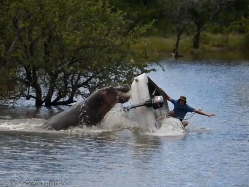 「こんなに怖いの!?」野生のカバにボートが襲われ転覆する