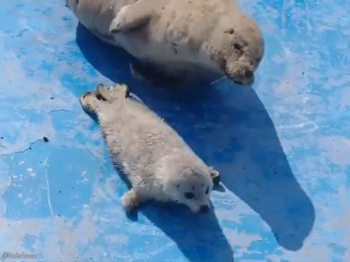 ふらふら歩き出そうとする赤ちゃんアザラシを…母アザラシはこうやって制止する