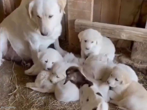 とまって寝ていた子犬たちとママ犬。そこへ子ヤギがやってきて、強引に混じろうとしたら……。結果をご覧ください。続きを読む