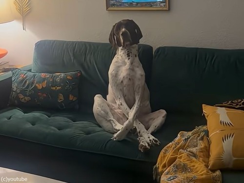 変わったポーズが好きな犬…お尻を大きく見せようとする(動画)