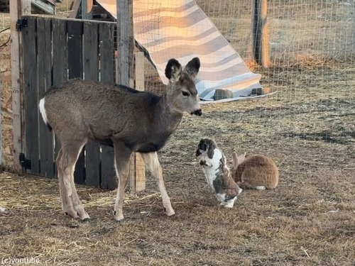 まるでディズニー映画…ウサギと鹿が友情を育む(動画)