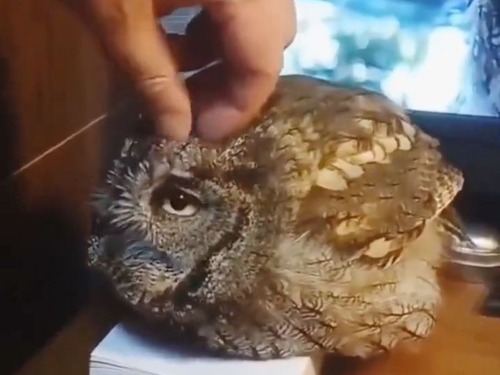 飼い主さんに頭をナデられるのが大好きなフクロウ。手を止めたら、目と鳴き声で「もっとしてほしい」とアピールしました。続きを読む