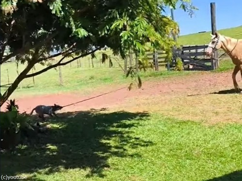 小さな犬「暑いよね?」馬の綱を引っ張って…木陰に連れていく(動画)
