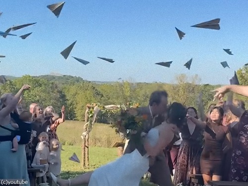 パイロットの結婚式にふさわしい祝福のしかた「紙飛行機が乱舞!」(動画)