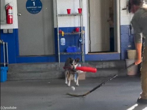 犬がバットでボールを空振りするも…器用にボールを見失う(動画)