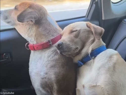 「犬も肩を貸すんだ…」ウトウトした犬が隣の犬に寄りかかって眠る(動画)