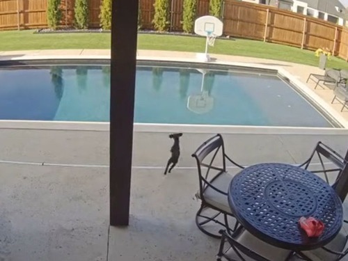 鳥を追いかけた犬…勢い余ってプールに落ちてしまう(動画)