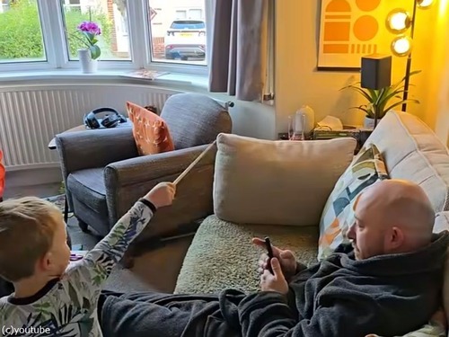 「うちの子が魔法の『箸』を使ってリビングのランプを点灯させている!」(動画)