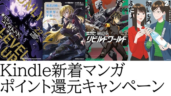 新刊がお得に!「俺だけレベルアップな件」「勇者召喚に巻き込まれたけど、異世界は平和でした」「焼いてるふたり」など35%還元【Kindle新刊還元セールまとめ】