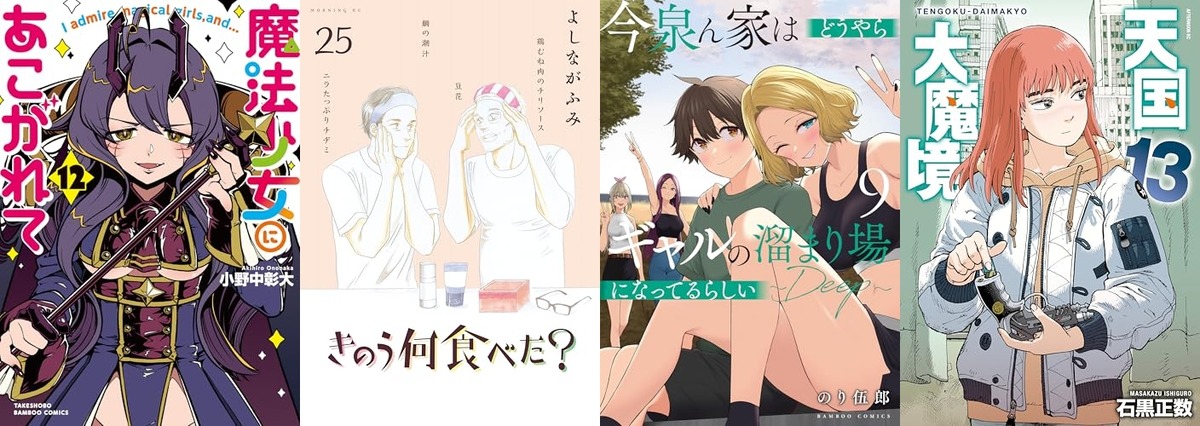 『しなのんちのいくる6』『ペンギン喫茶は今日も青天2』『今日もネコ様の圧が強い』『黒猫ろんと暮らしたら6』『生徒指導の百合先生』『へたくそなのに泣くほど笑える!』『ひゃくに』など