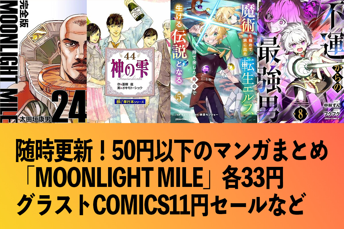 【Kindle50円以下セール】「MOONLIGHT MILE」全24巻各33円、「不運からの最強男」ほかグラストCOMICSで最新巻含め11円セール!