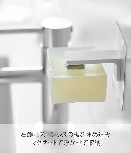 このタイプは石鹸の底面に小さな金属プレートを埋め込み、磁石で壁面に浮かせて保管する画期的なアイテムです。マグネット式が優れている最大の理由は、石鹸が常に空中に浮いた状態で乾燥できることにあります。従来の石鹸置きでは、底面が必ず何かに接触するため、その部分だけ乾きにくくドロドロになりがちでした。しかし、マグネット式なら360度全方向から空気が当たるため、驚くほど早く乾燥します。
